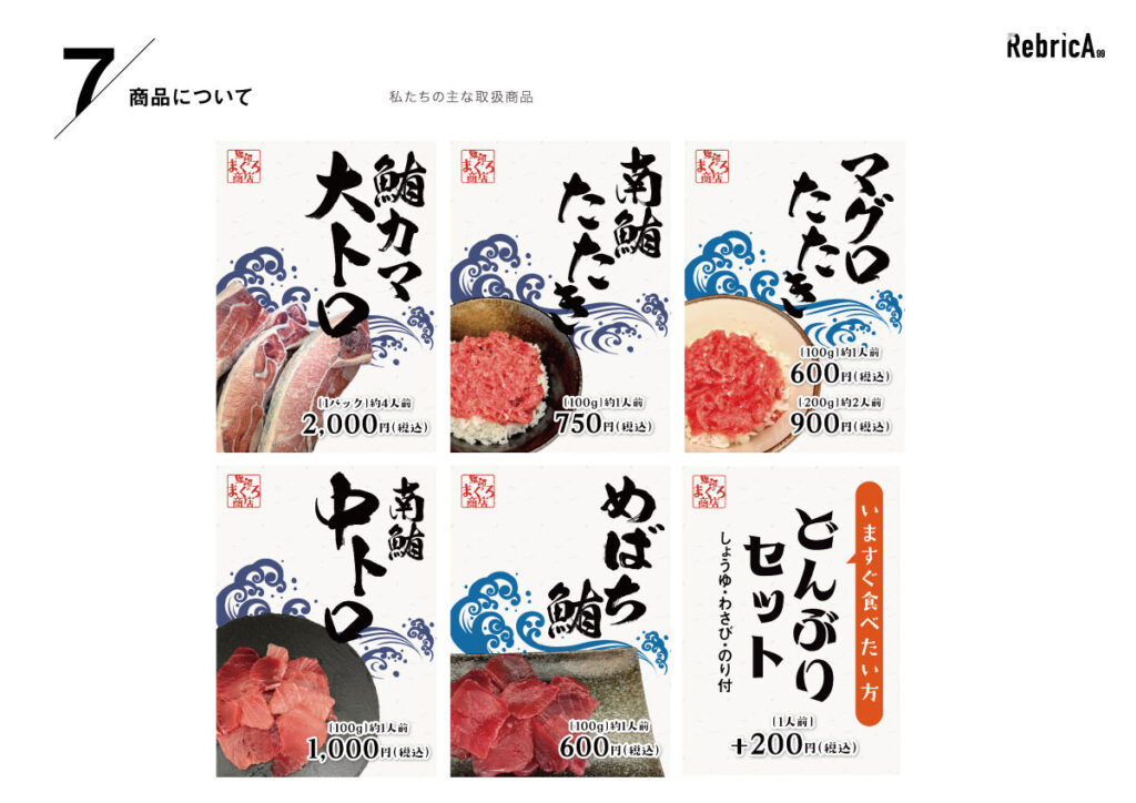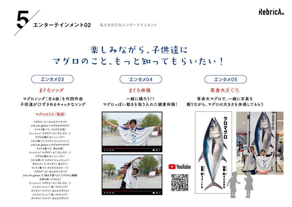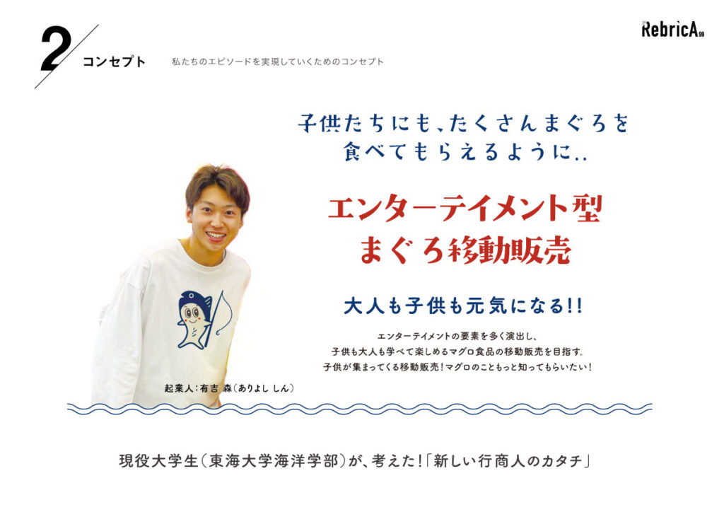 2025.4.01〜 駿河まぐろ商店_ブランディング Concept_ エンタメ移動販売でおさかな週間 Works_ 店名・ロゴ・キャラクター・キャラクター展開(紙芝居など)・まぐろソング・SNS運営フォロー・営業先フォロー